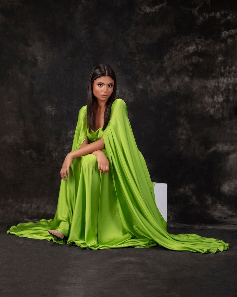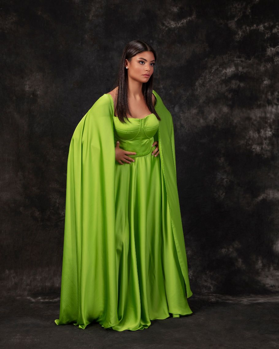 فستان حريري أخضر