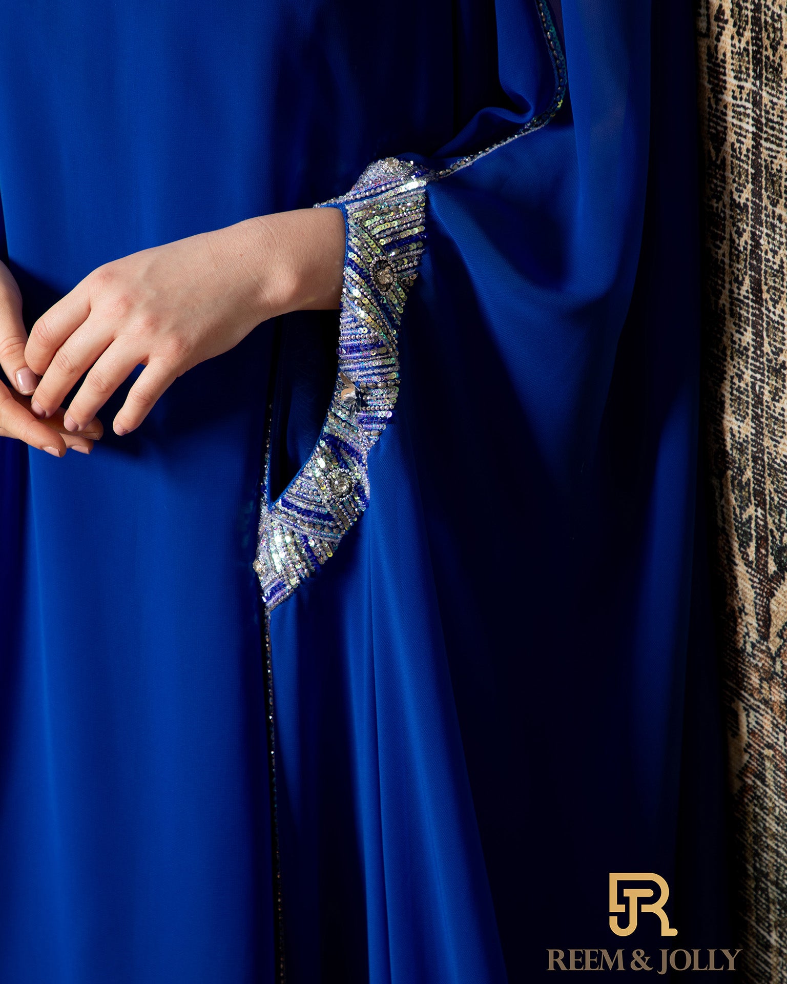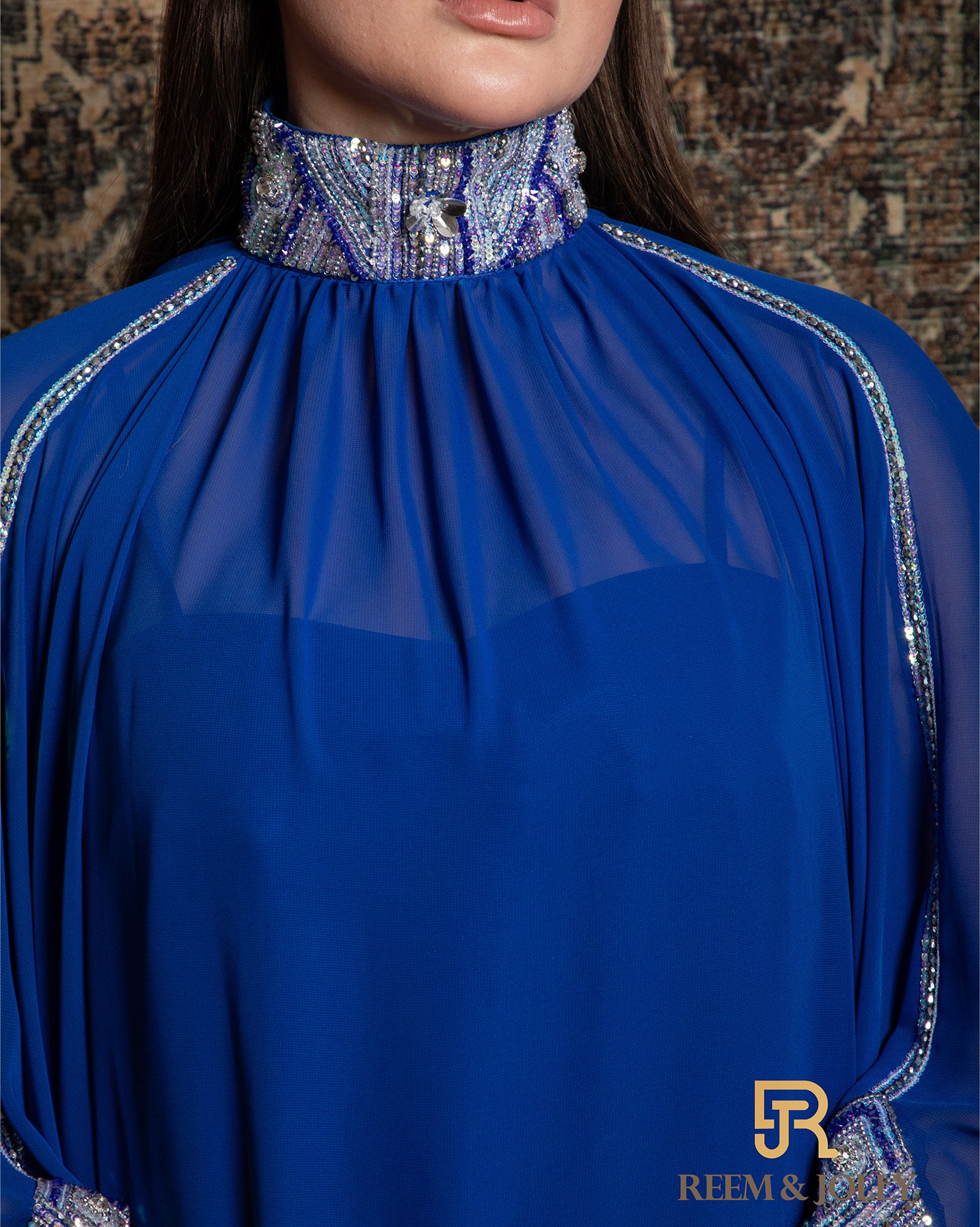 2 Pieces , Crepe inner with shiffon , hand embroidered , Blue Color