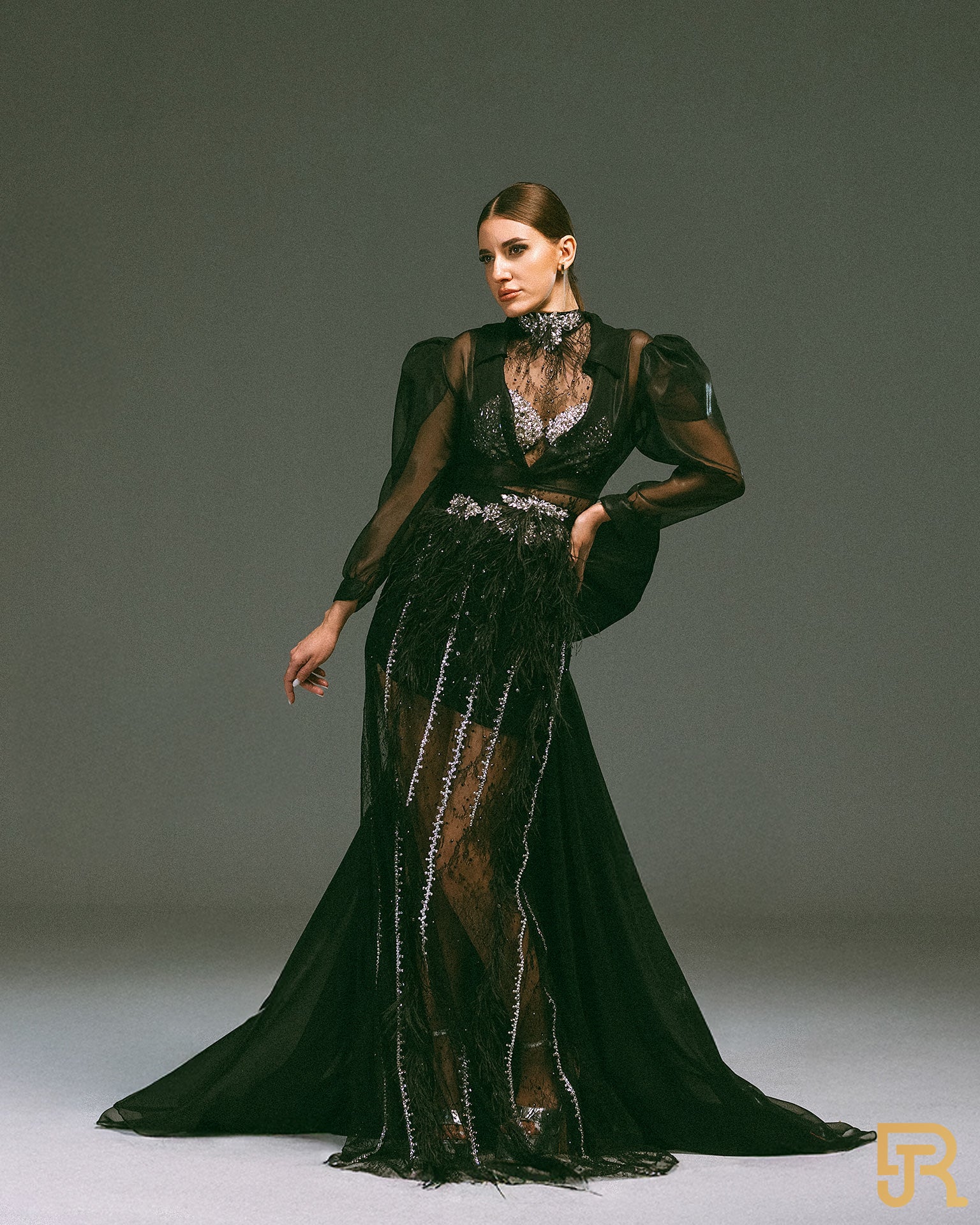2 pieces belted embroidered, dantel black dress - Available size M, L - A042
